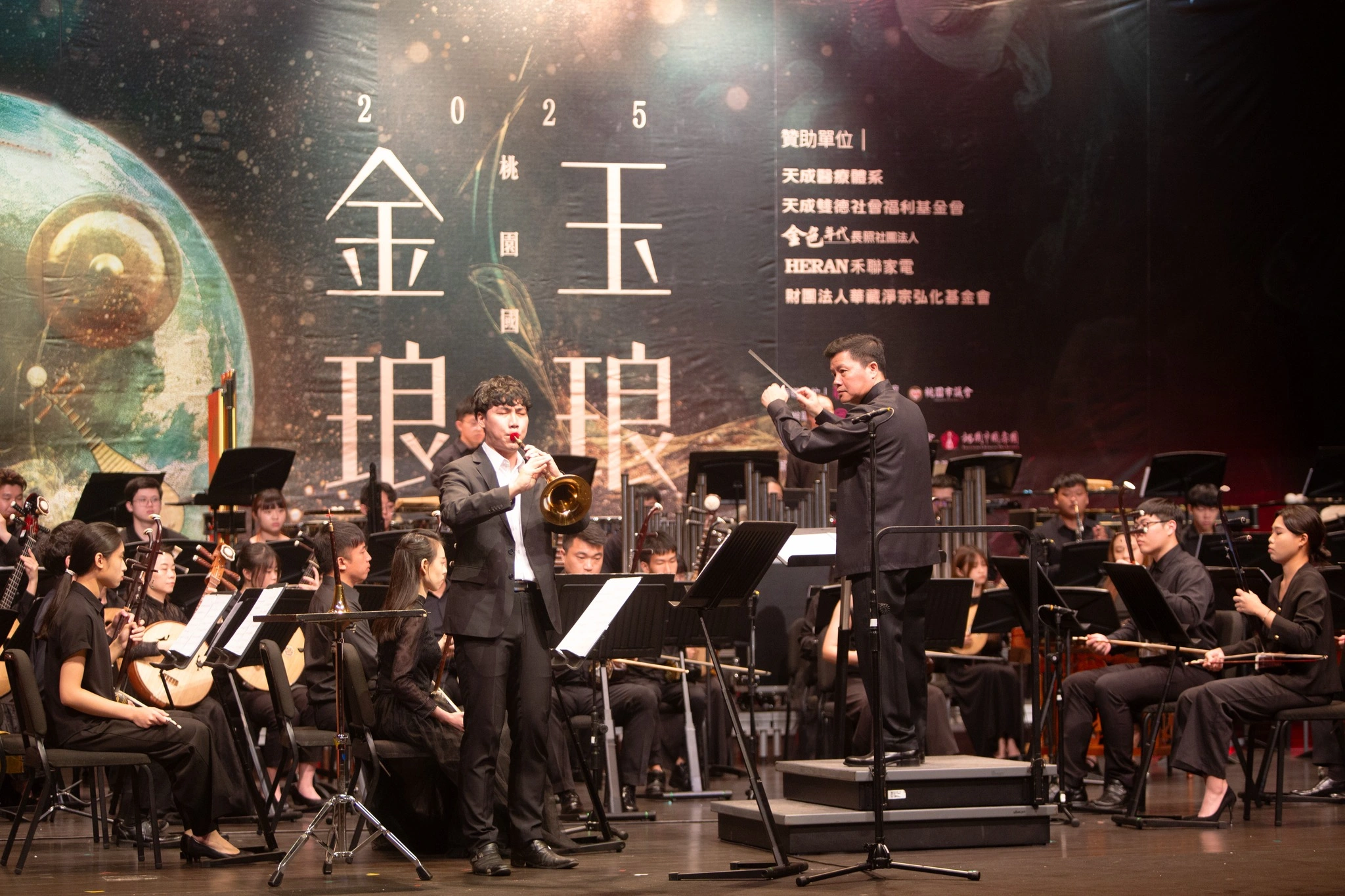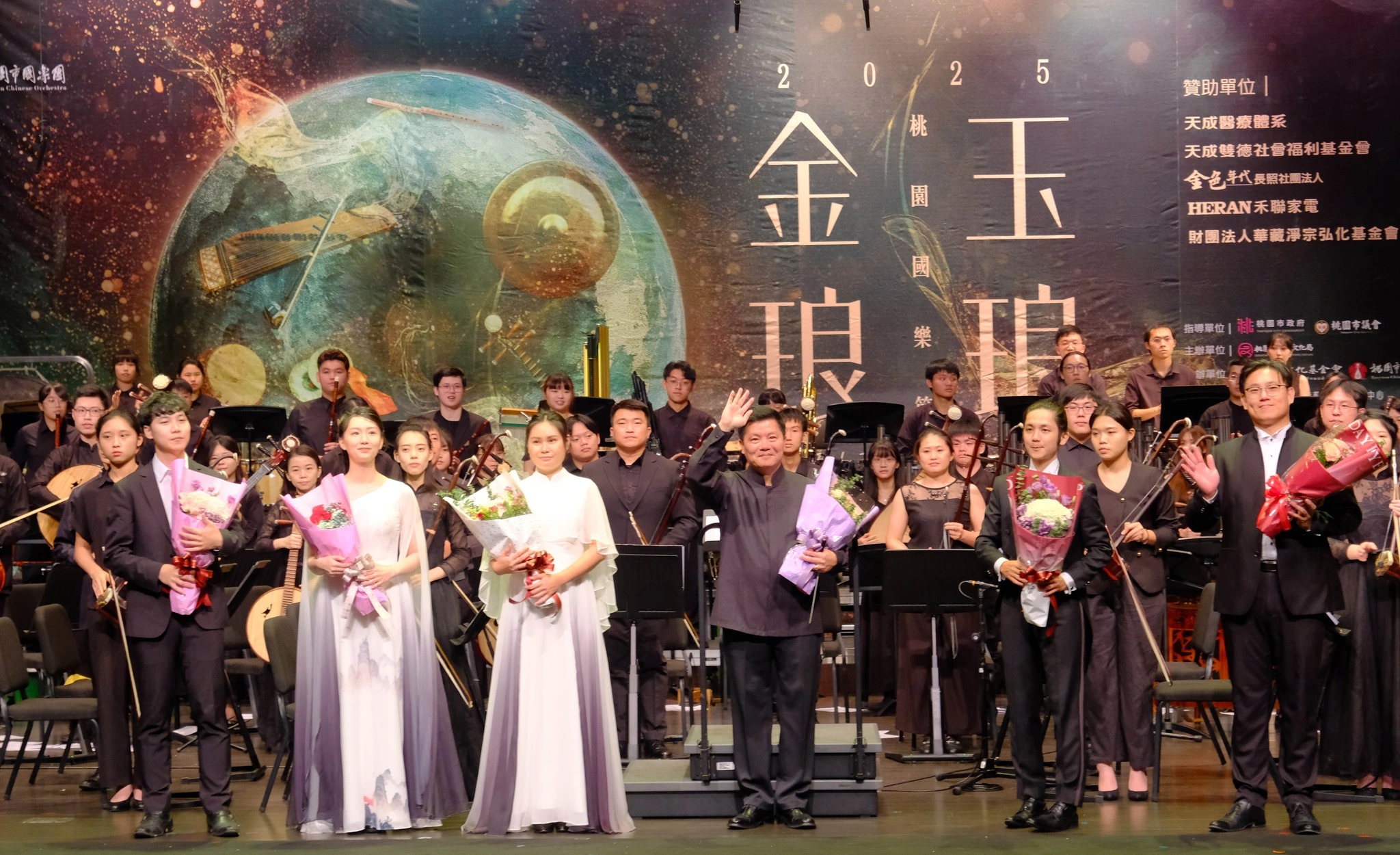 2025桃園國樂節精彩呈現「團聚桃園」串流福爾摩沙音樂會,由桃園市國樂團首度與國藝會 Taiwan Top 演藝團隊-嘉義民族管弦樂團交流演出,展開一場跨城市的音樂對話與文化交流。在三位風格鮮明的指揮安敬業、呂翼雲、劉士維接連呈獻豐富的音樂曲風,展現多重層次的藝術特質,共同呈現出極具層次與情感張力的演出。
