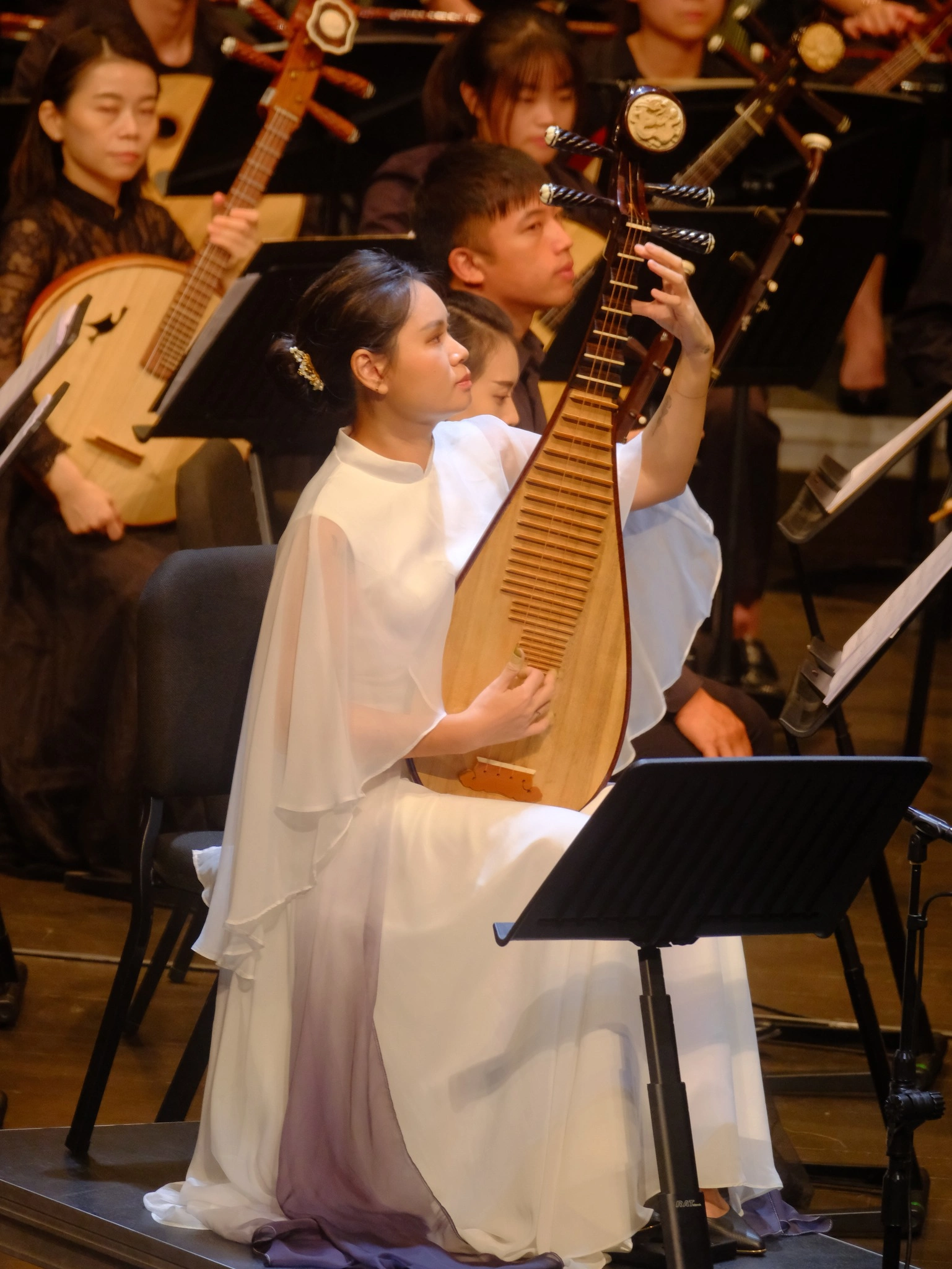 亮點曲目如《武聖》、《聽香》展現出嗩吶演奏家林裕朋、笛演奏家陳乙萱與琵琶演奏家石丞玉精湛技藝;而《我們飛》、《姊妹島》、《劉家古厝》等作品更猶如台灣豐富多樣的聲音地景,傳遞著台灣土地的文化溫度。此次合作不僅是藝術上的交流,更象徵城市間的友好與連結,桃園市國樂團將持續以音樂為橋,串聯城市,擁抱多元,共創文化新篇章