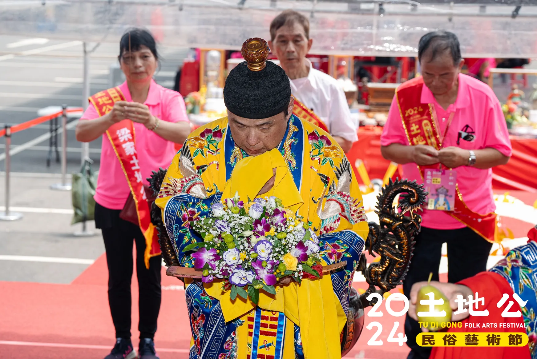 上午9:00開始,於新永和市場所搭設的紅壇區,邀請桃園妙應壇道長們舉行三獻法會。法會開始,樂奏齊天,萬聖齊臨,三官賜福,恭頌福德妙經,為眾生祈福,合境平安。下午13:30叩謝龍神,土地公們靈力回充。紅壇下設香爐供信眾跟拜,香火鼎盛,參與信眾共享法喜。
