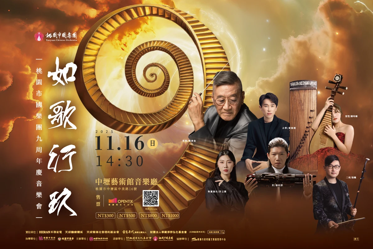 桃園市國樂團邁入第九年,特別策劃本次周年慶音樂會,不僅彰顯國樂專業演繹的高度,也體現培育青年音樂家承襲傳統精髓。這九年,樂團如歌而行,每一場演出都是用心靈與默契雕琢的藝術。一段始於初心、忠於傳承、望於未來的音樂盛會,承載著我們對國樂的熱情,與對未來的無限想像✨